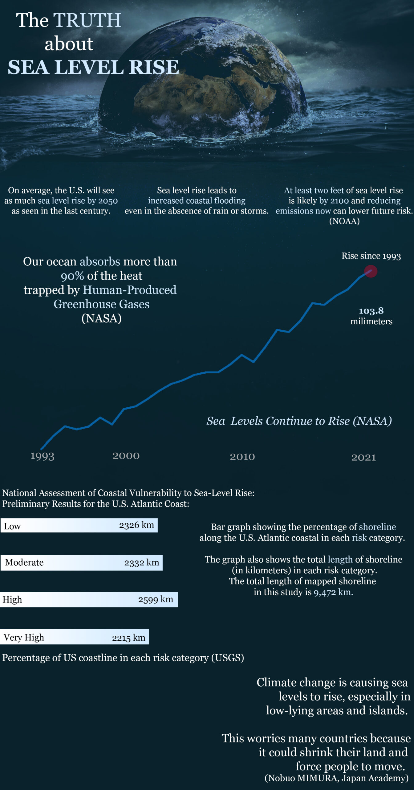 Created a graphic using photoshop about how sea level rise is affected by climate change. Click on the image to see the full graphic.